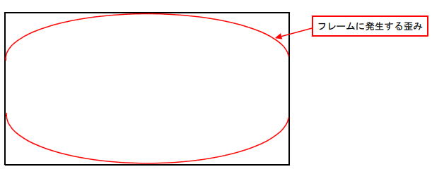 画像中央付近ではそれほど歪みを感じないものの、レンズを広角にしているが故、画像の中央から左右端に進むにつれて下図のように歪みが大きくなり、レンズの四隅に映る映像はレンズの中央部に向かって湾曲しています。