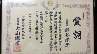 辞職承認により本部長賞詞を受賞し千葉県警察官退官